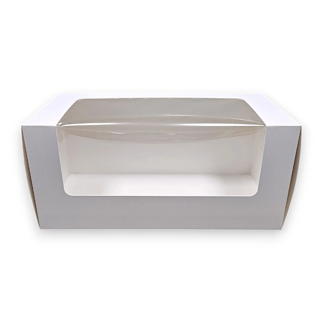 Cutii cozonac din carton alb cu fereastră 32x14x15cm, set 25 buc, ideale pentru ambalare elegantă și protecție sigură a produselor de patiserie.