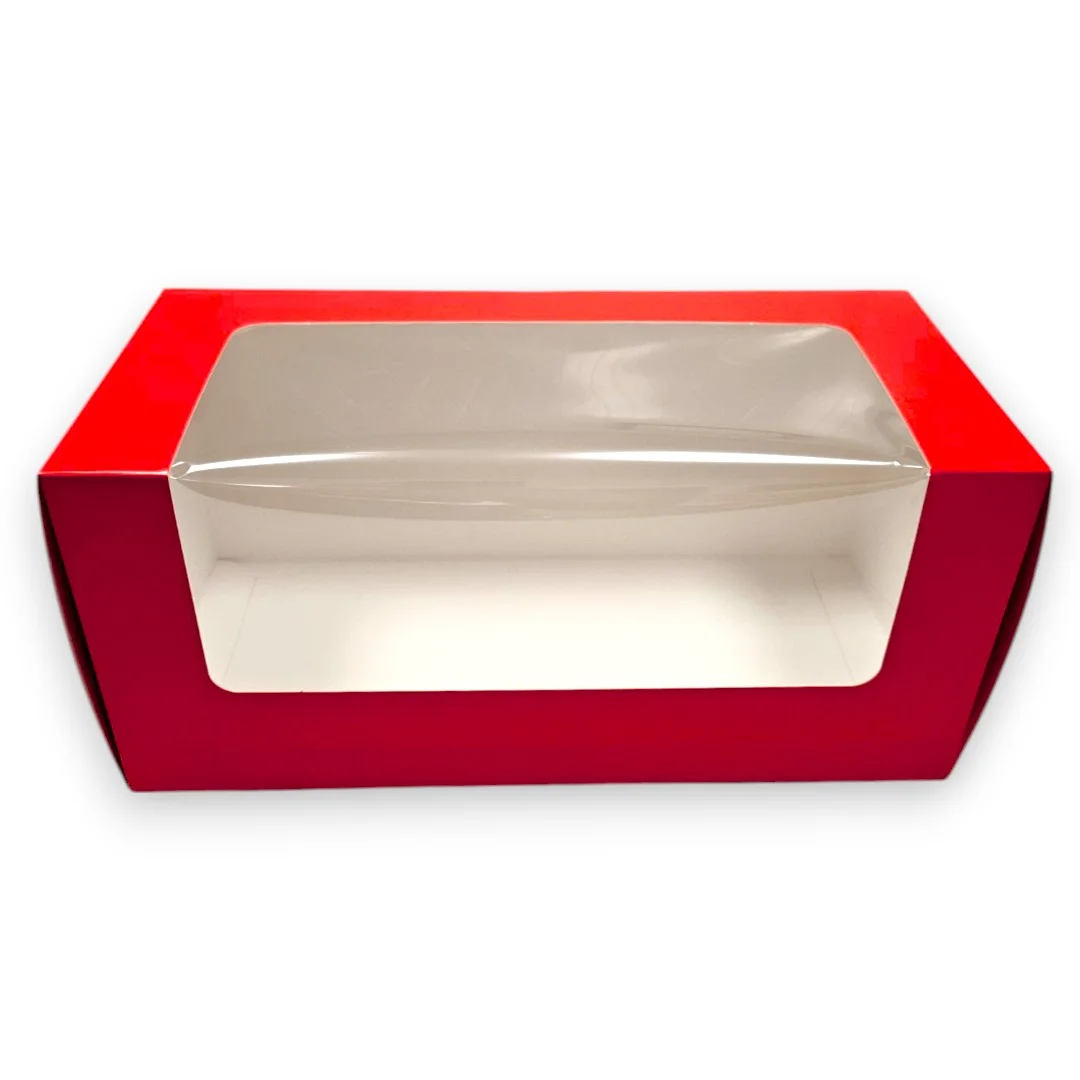 Cutii cozonac din carton rosu cu fereastră 32x14x15cm, set 25 buc, ideale pentru ambalare elegantă și protecție sigură a produselor de patiserie.