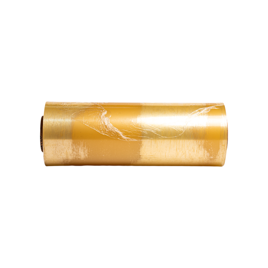 Folie alimentară galbenă 10 microni, 45 cm x 1500 m. Ideală pentru ambalarea și protecția alimentelor în bucătării profesionale.