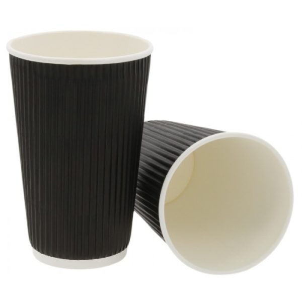 Pahar din carton cu perete rippled, negru, diametru 90 mm, capacitate 16oz – ideal pentru băuturi fierbinți. Set de 25 bucăți.