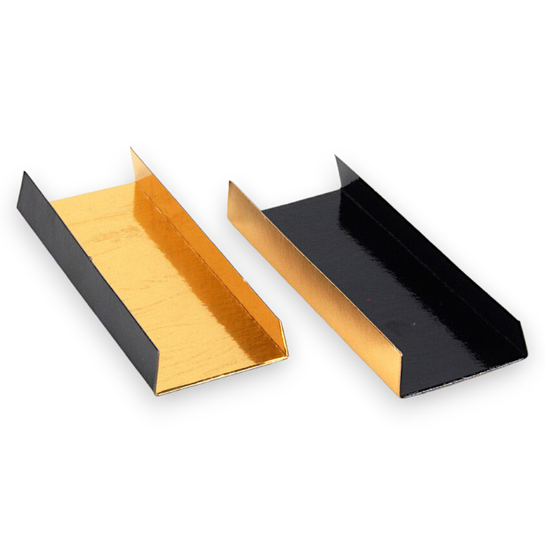 Tăvițe Carton Auriu/Negru pentru Ecler – 13×4.5 cm (200 bucăți)